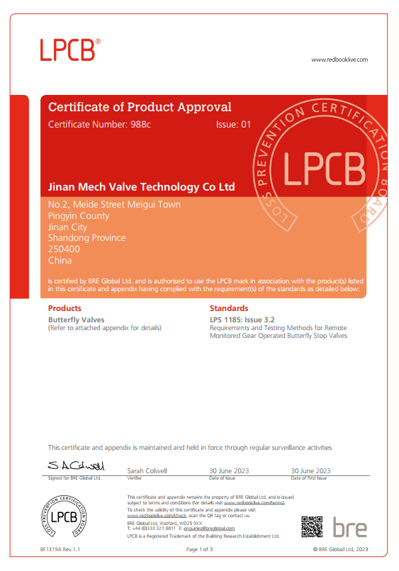 Meide Group butterfly valve D381X/XD381X obtained LPCB certification