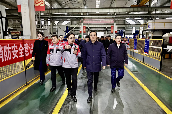 2024年12月8日,濟南市2024年全市深化新舊動能轉換推動綠色低碳高質量發展重大項目現場觀摩活動走進玫德集團。濟南市委書記劉強帶領考察團對邁克管業流體設備制造和檢測實驗基地項目進行現場觀摩考察。玫德集團黨委書記、董事局副主席郭雷等陪同。