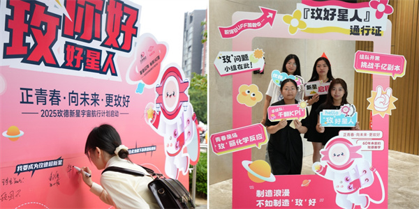 平陰總部與科創(chuàng)中心的巨幅簽名墻前,新員工們莊重簽下姓名,筆墨間盡顯青春抱負(fù)。科創(chuàng)中心特設(shè)“‘玫’好星人通行證”主題相框,新員工手持“hello,‘玫’好星人”手舉牌創(chuàng)意留影。鏡頭定格的一張張笑臉,成為職業(yè)生涯的珍貴扉頁。